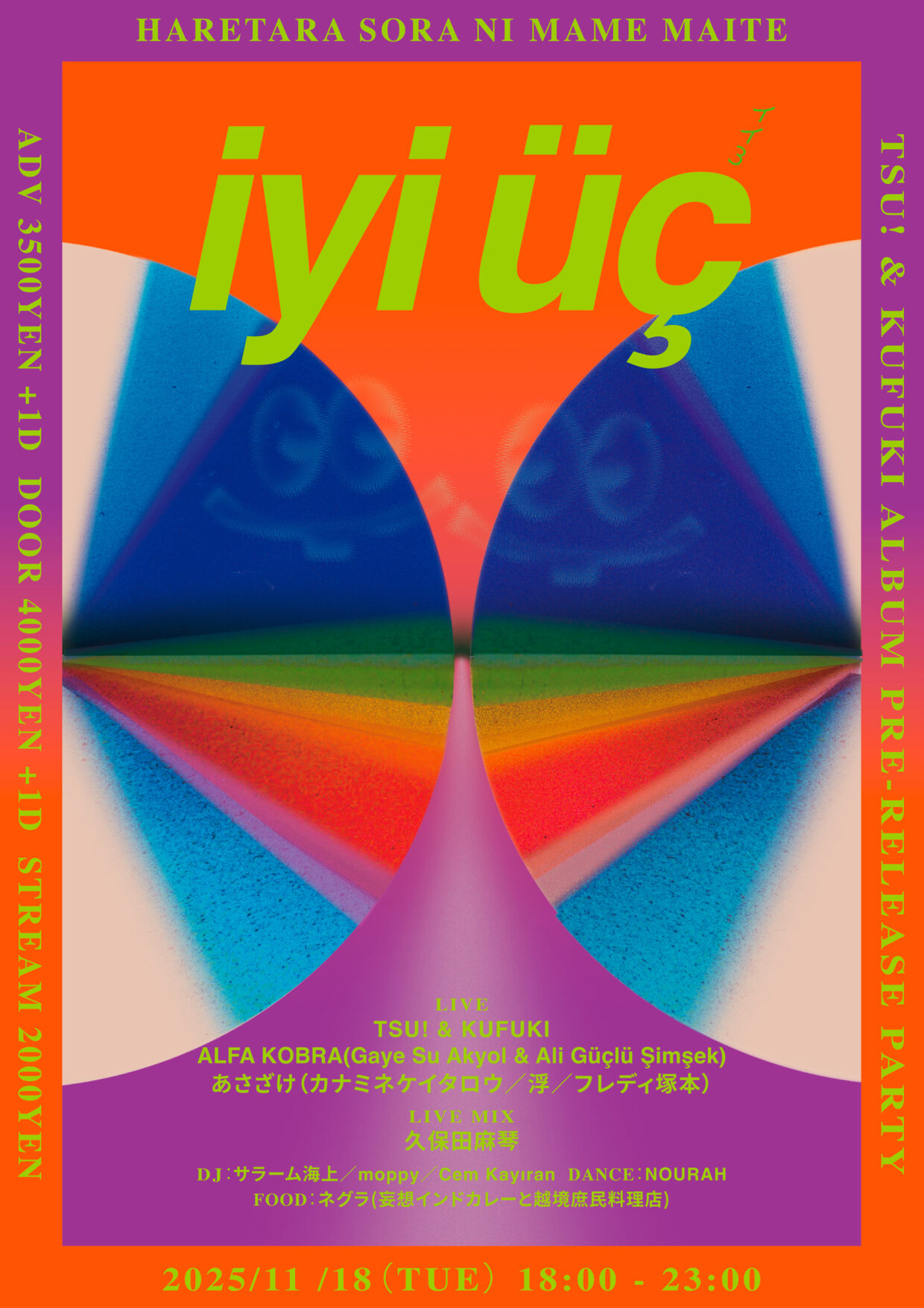 イスタンブールのアシッド・フォーク TSU! と 日本のプログレッシブ民謡 くふき(KUFUKI) の共作アルバムが遂に完成!TSU! & KUFUKI のライブを 音の錬金術師 久保田麻琴 の ライブ・ミックス(!)と、Nourah の華麗なベリーダンスでお届けします。